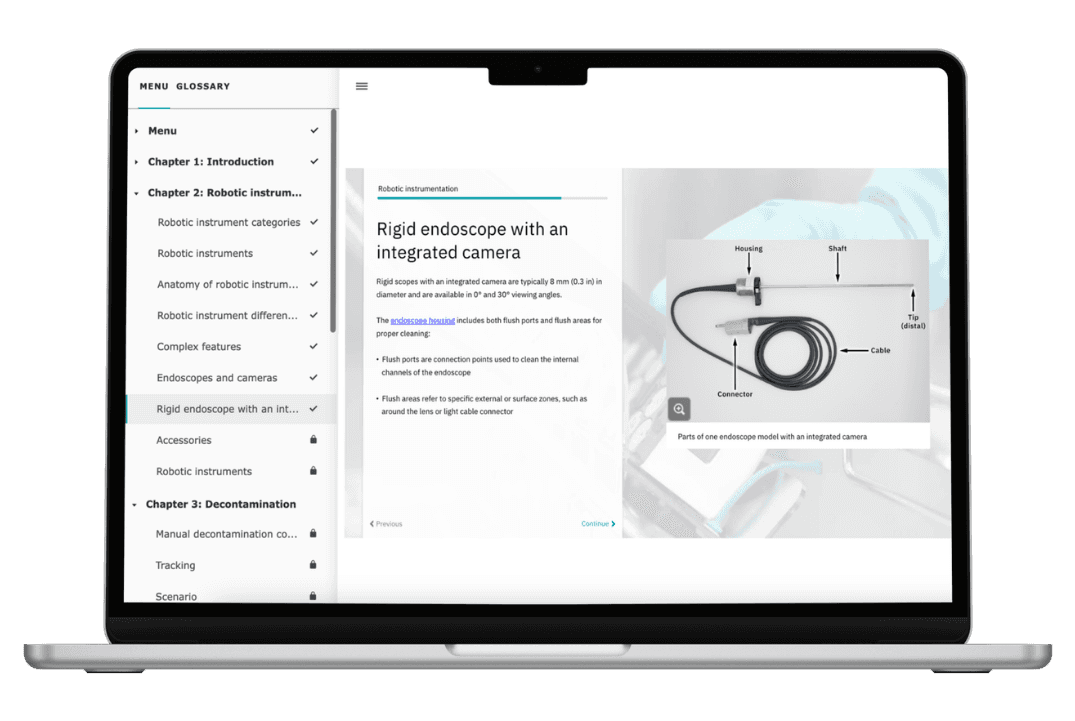 For the Specialty Instrumentation Program, that meant diving deep into complex instruments that demand precise reprocessing steps. Our content team reviewed industry guidelines, certification requirements, and best practices, while collaborating closely with SPD leaders and educators to ensure relevance to real-world workflows.